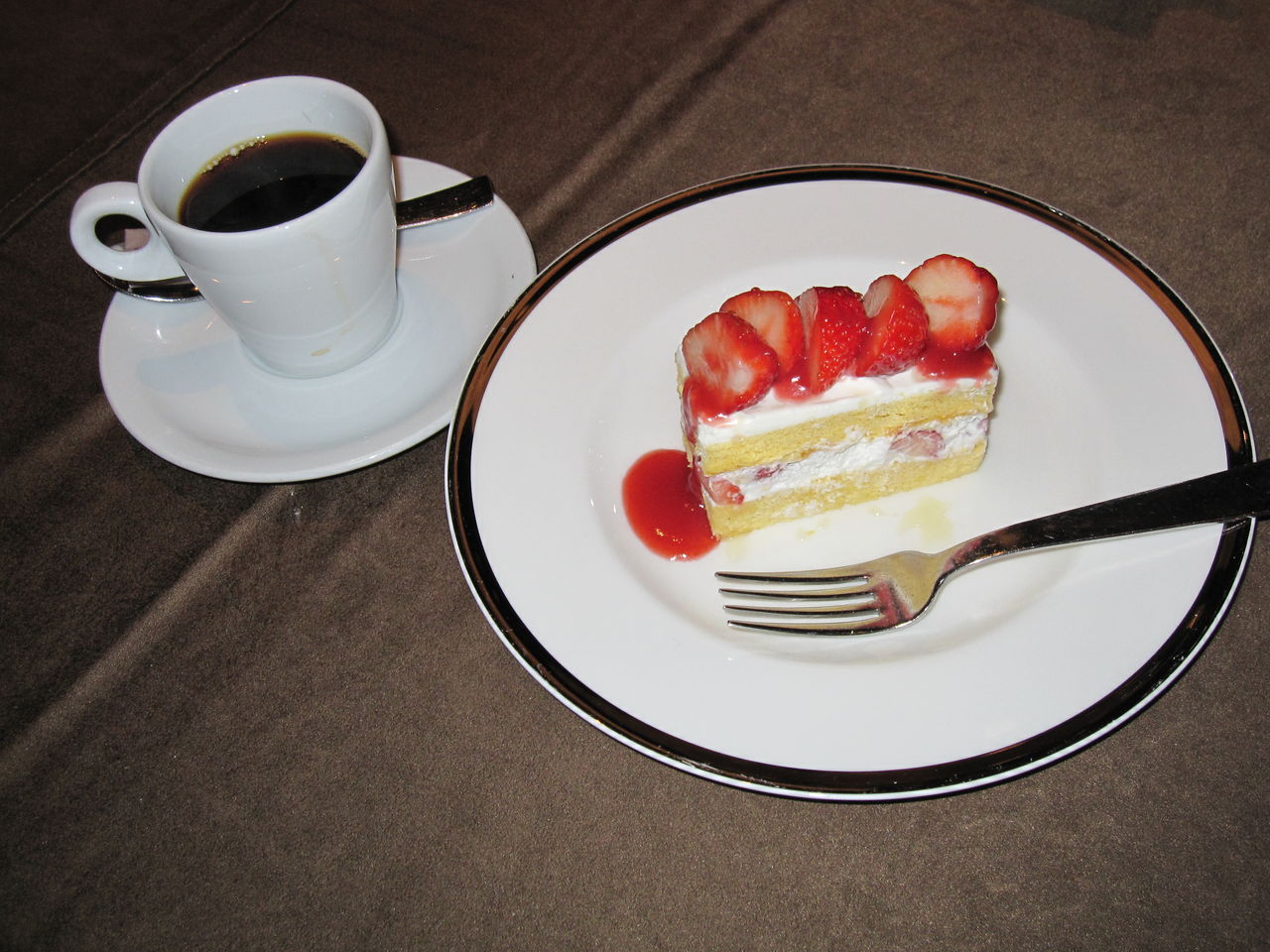 お待ちかねのデザートタイム。今月は、ストロベリーショートケーキ。フレッシュで甘酸っぱい苺ソースと蜂蜜のソースがベストマッチ♡