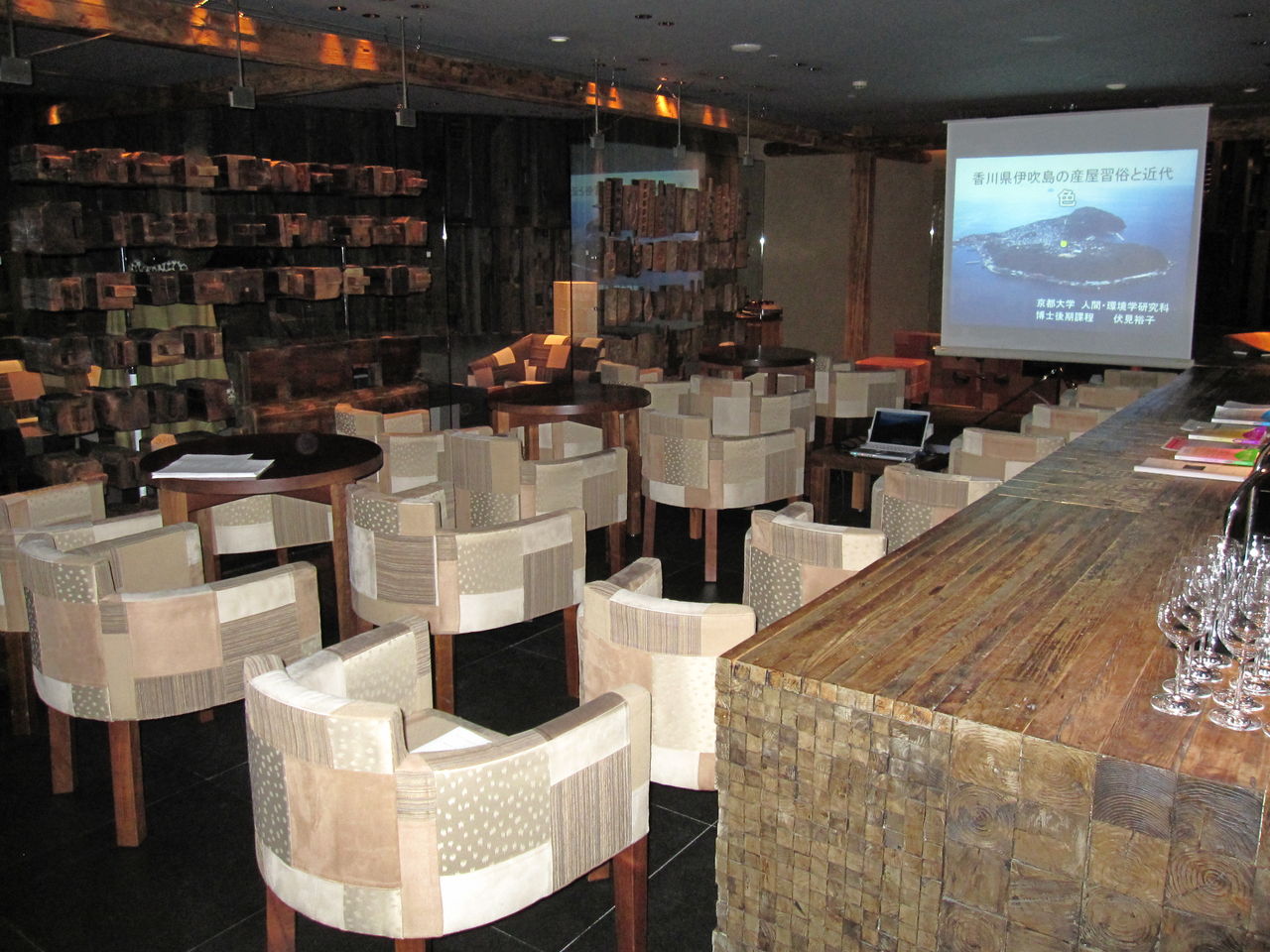 香川県伊吹島の産屋は、1970年まで使用されていたということで、伏見さんみずから(しかも生後三ヶ月の赤ちゃんを連れて!)現地へおもむき、聞き取り調査をするなど積極的にフィールドワークもされています。研究への気迫を感じるお話でした。(3番目の写真は、伏見さん撮影による伊吹産院跡を示す石碑。2011/4/1香川県伊吹島)
