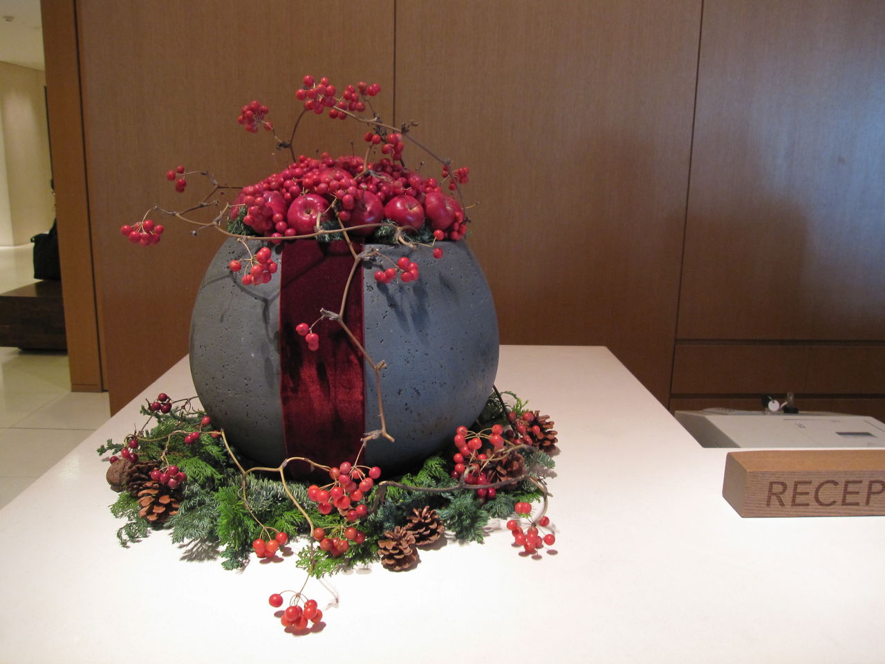 赤い実、小さいリンゴ、大きな丸い花器、…マグリットのリンゴ?