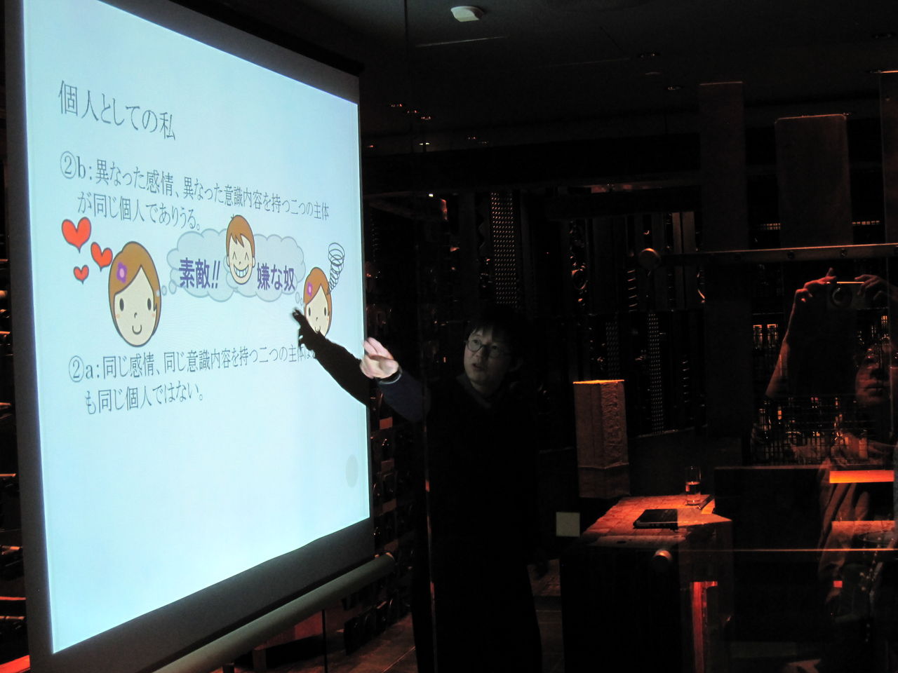 さて、今月は「ずらす」のが、どうやら統一テーマになっているようだと感じられた方も多かったのではないでしょうか。利根川さんの発表で私たちは「視線をずらし」、中嶋さんのお話を聴いて今度は「個人をずらす」「個人としての私をずらす」ことになりました。主催者としては、全く意図していなかったことでした。けれども、ものごとを突き詰めていくと、それはどこか一つに収斂していくのかしら、と感じるのでした。とにかく、毎月一回だけでも、こうして脳をフル活動させるのは悪くないでしょう。